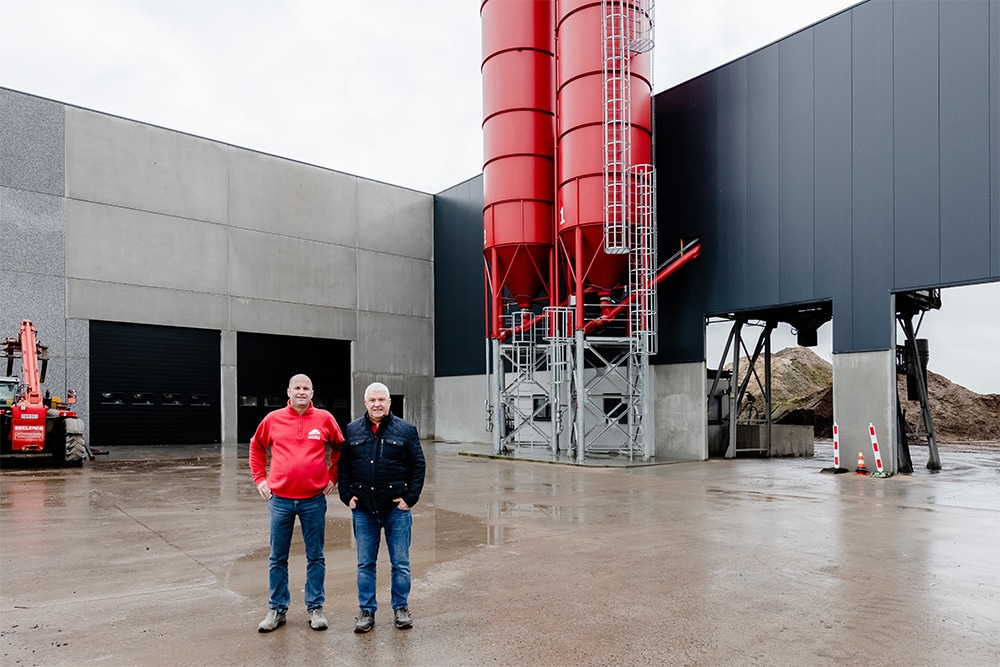 Het was onder meer de stelselmatige opeenstapeling van afbraakmaterialen op de site in Meulebeke die het familiebedrijf aanzette tot de investering in een hoogsteigen betoncentrale. Davy Declercq: “Er is omwille van onze activiteiten altijd al een grote aanvoer van afbraakmaterialen geweest, maar in het verleden konden die nog eenvoudig in wegenissen verwerkt worden. Vandaag is er daarvoor vooral vraag naar cement- en kalkgebonden materialen, waardoor we onze gerecupereerde grondstoffen moeilijker kwijt geraakten en de bergen materiaal alsmaar groter werden. Met de nieuwe betoncentrale kunnen we ze nu echter in nieuwe mengsels verwerken en dus volledig zelf benutten.”
